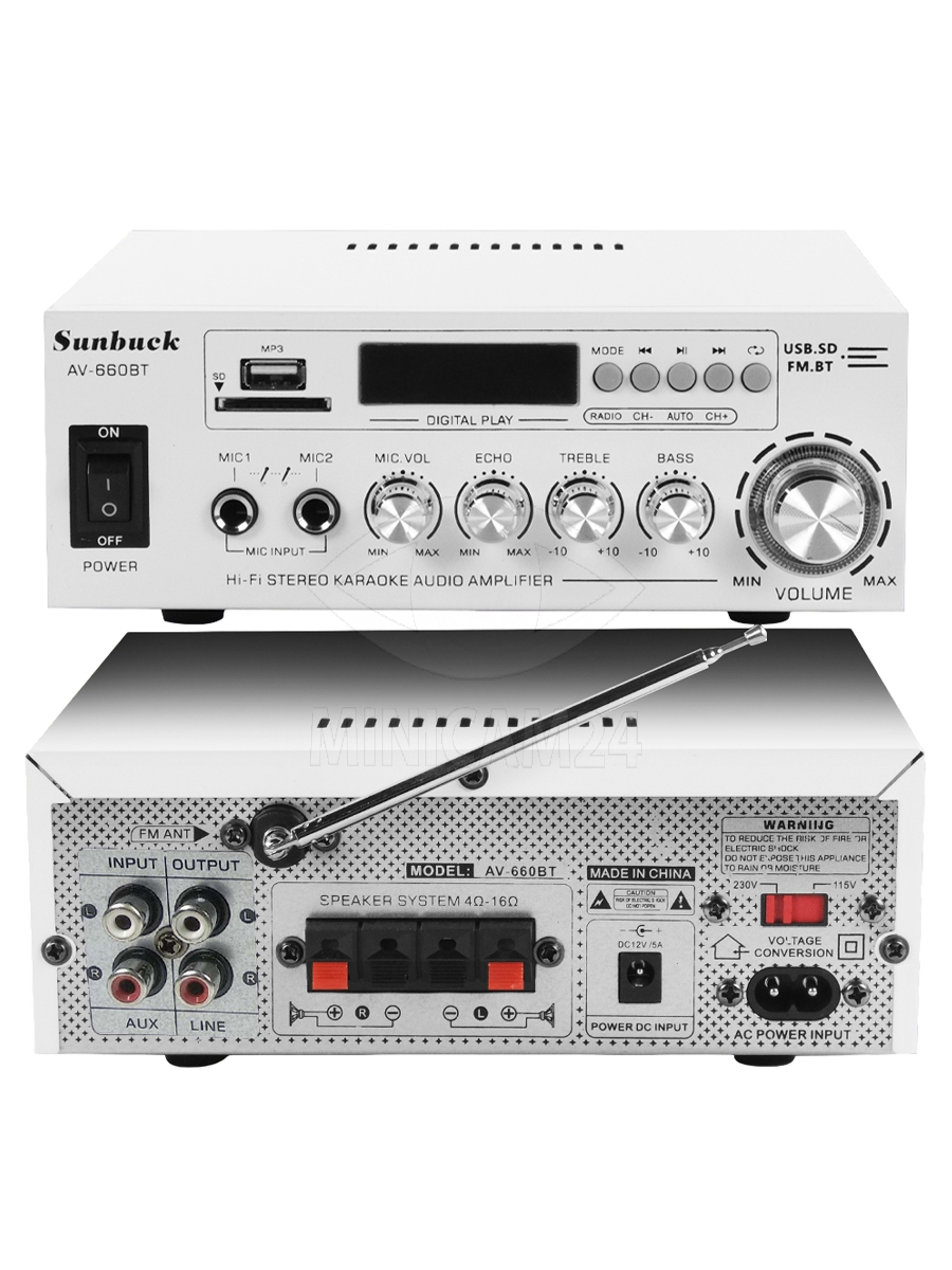 Интегральный Bluetooth усилитель Sunbuck AV-660BT, белый