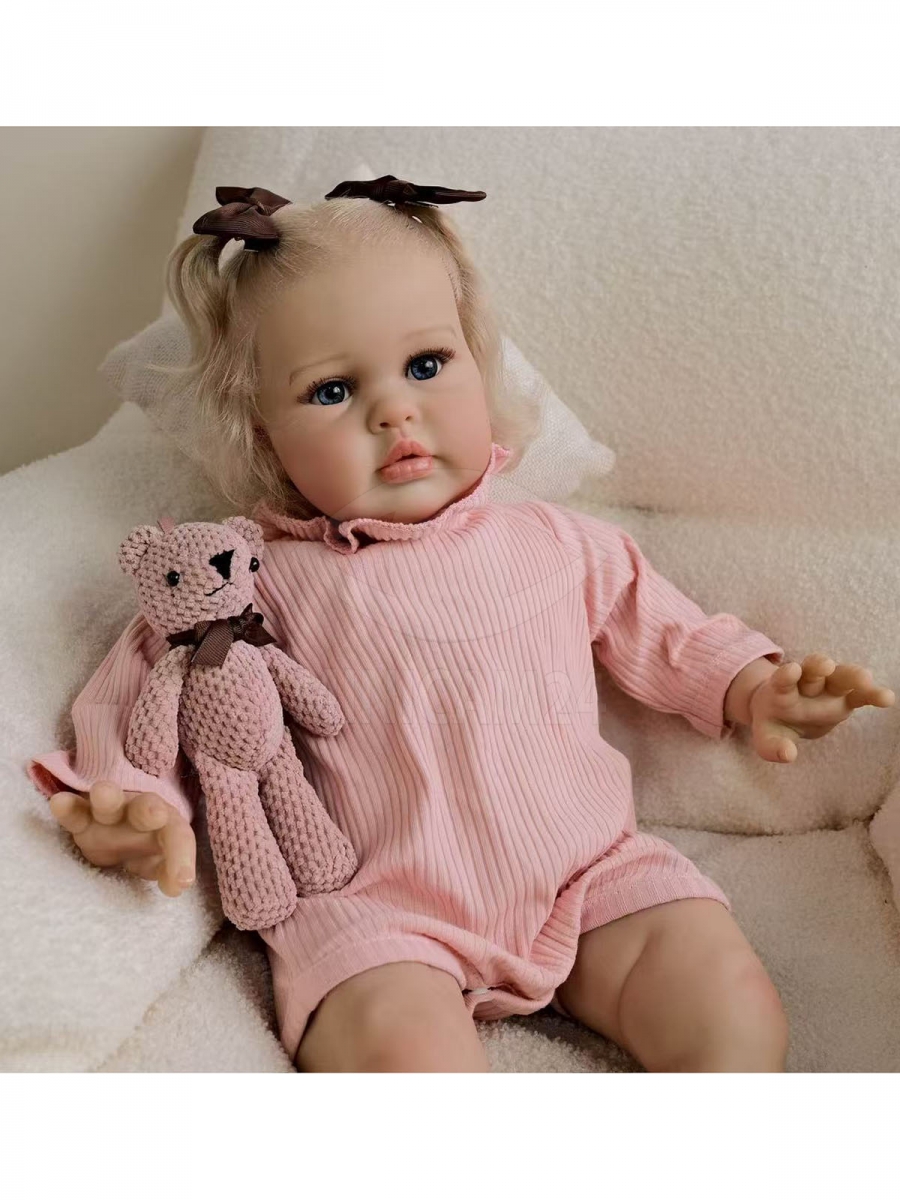 Кукла реборн Эльза высотой 55 см выполнена в реалистичном стиле с высокой степенью детализации. Её тело мягконабивное, изготовлено из текстиля с наполнителем, благодаря чему она приятна на ощупь и удобно ложится в руки. Ручки и ножки выполнены из винил-силикона, что придаёт внешнему виду куклы ещё большее сходство с настоящим младенцем.